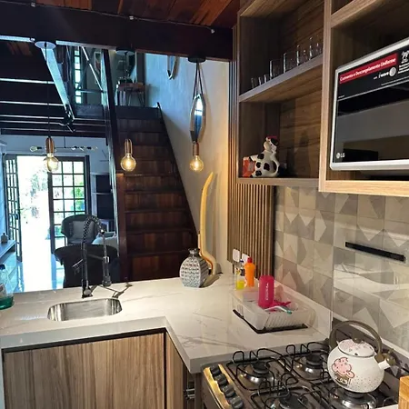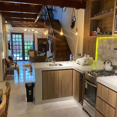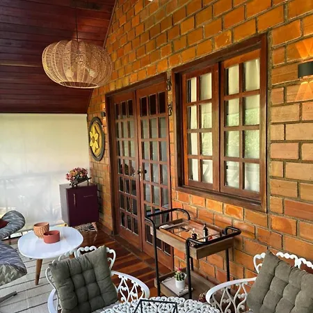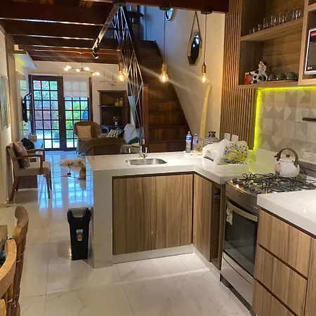 A Chale Rustico E Aconchegante Em Gravata Villa biztosít felszerelt konyhasarkot kávé/tea készítővel, hűtővel és sütővel, hogy lehetősége legyen a főzésre.